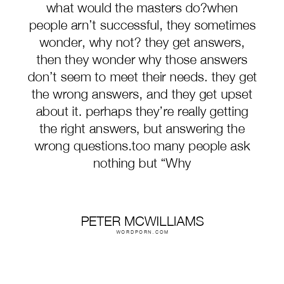 what would the masters do?when people arn’t successful, they sometimes wonder, why not? they get answers, then they wonder why those answers don’t seem to meet their needs. they get the wrong answers, and they get upset about it. perhaps they’re really getting the right answers, but answering the wrong questions.too many people ask nothing but “Why