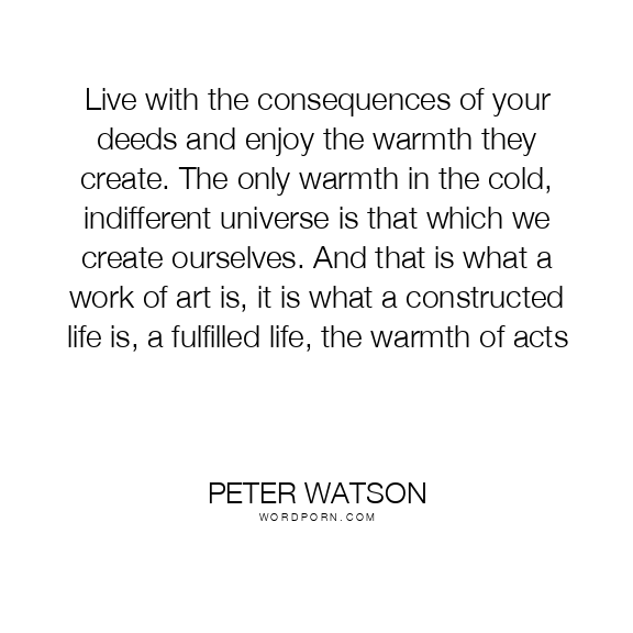 Live with the consequences of your deeds and enjoy the warmth they create. The only warmth in the cold, indifferent universe is that which we create ourselves. And that is what a work of art is, it is what a constructed life is, a fulfilled life, the warmth of acts