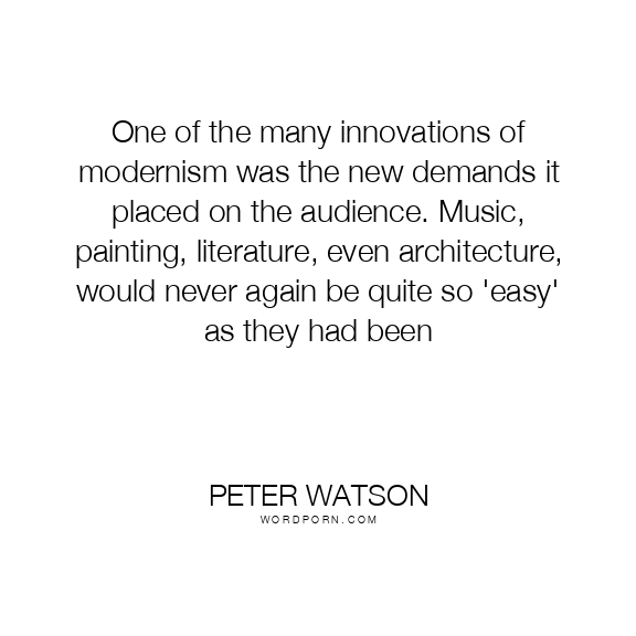 One of the many innovations of modernism was the new demands it placed on the audience. Music, painting, literature, even architecture, would never again be quite so 'easy' as they had been