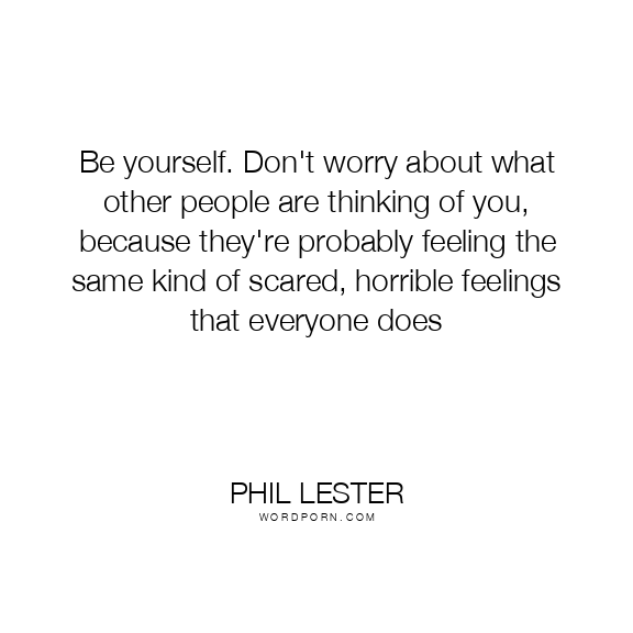 Be yourself. Don't worry about what other people are thinking of you, because they're probably feeling the same kind of scared, horrible feelings that everyone does