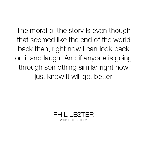 The moral of the story is even though that seemed like the end of the world back then, right now I can look back on it and laugh. And if anyone is going through something similar right now just know it will get better