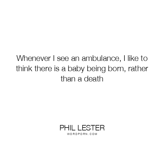 Whenever I see an ambulance, I like to think there is a baby being born, rather than a death