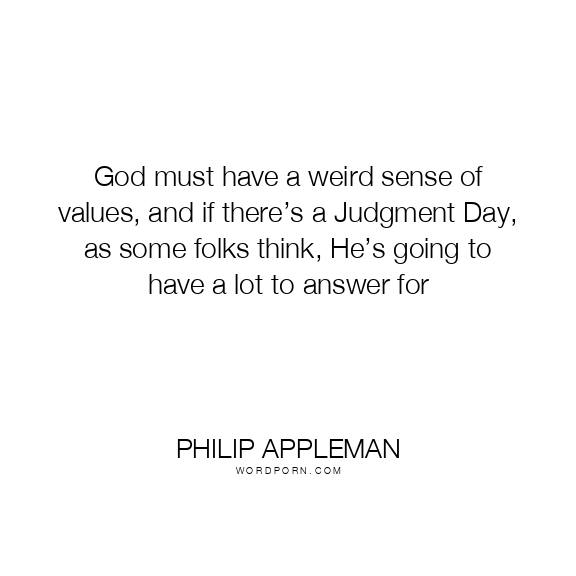 God must have a weird sense of values, and if there’s a Judgment Day, as some folks think, He’s going to have a lot to answer for