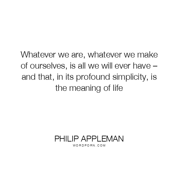 Whatever we are, whatever we make of ourselves, is all we will ever have – and that, in its profound simplicity, is the meaning of life