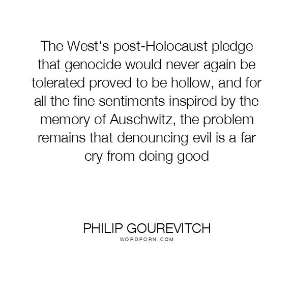 The West's post-Holocaust pledge that genocide would never again be tolerated proved to be hollow, and for all the fine sentiments inspired by the memory of Auschwitz, the problem remains that denouncing evil is a far cry from doing good