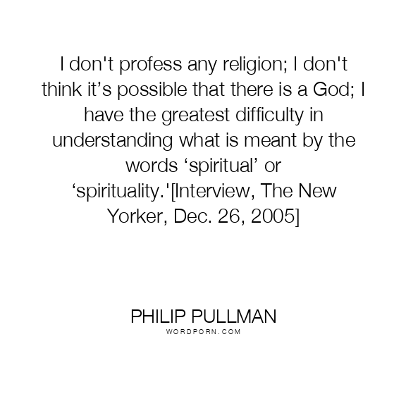 I don't profess any religion; I don't think it’s possible that there is a God; I have the greatest difficulty in understanding what is meant by the words ‘spiritual’ or ‘spirituality.'[Interview, The New Yorker, Dec. 26, 2005]