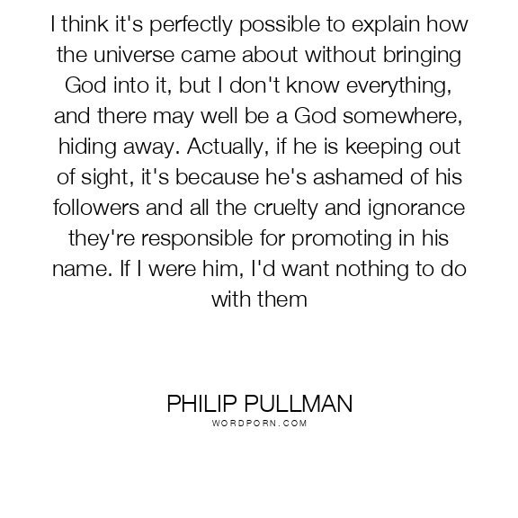 I think it's perfectly possible to explain how the universe came about without bringing God into it, but I don't know everything, and there may well be a God somewhere, hiding away. Actually, if he is keeping out of sight, it's because he's ashamed of his followers and all the cruelty and ignorance they're responsible for promoting in his name. If I were him, I'd want nothing to do with them
