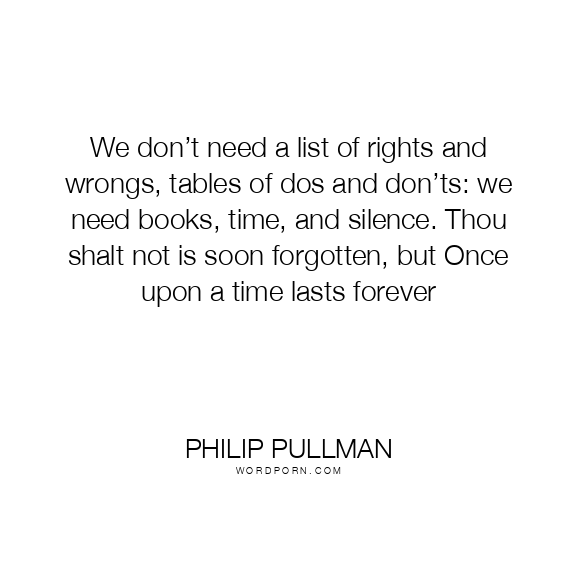 We don’t need a list of rights and wrongs, tables of dos and don’ts: we need books, time, and silence. Thou shalt not is soon forgotten, but Once upon a time lasts forever