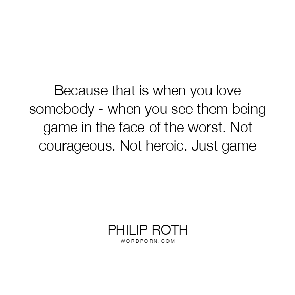 Because that is when you love somebody - when you see them being game in the face of the worst. Not courageous. Not heroic. Just game