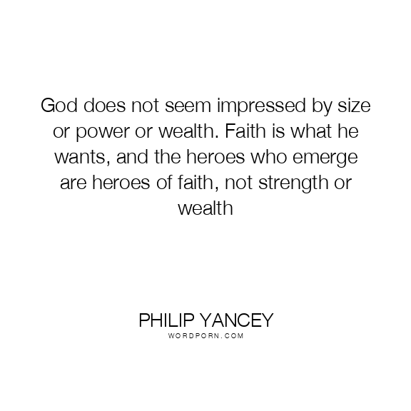 God does not seem impressed by size or power or wealth. Faith is what he wants, and the heroes who emerge are heroes of faith, not strength or wealth