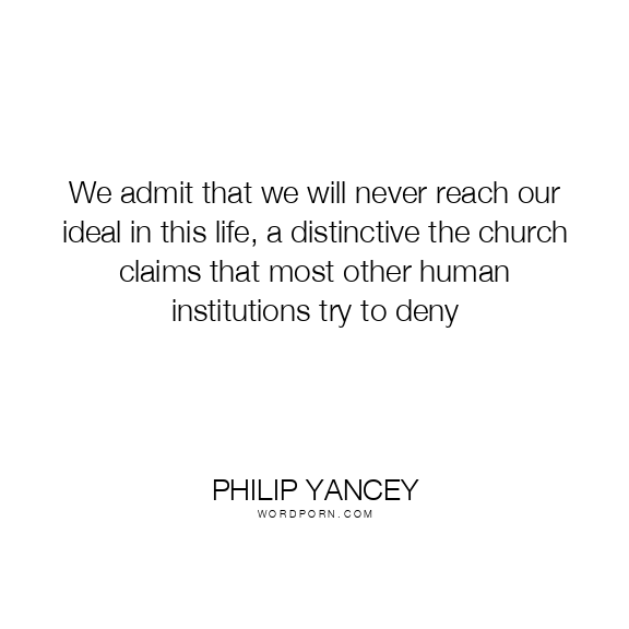 We admit that we will never reach our ideal in this life, a distinctive the church claims that most other human institutions try to deny