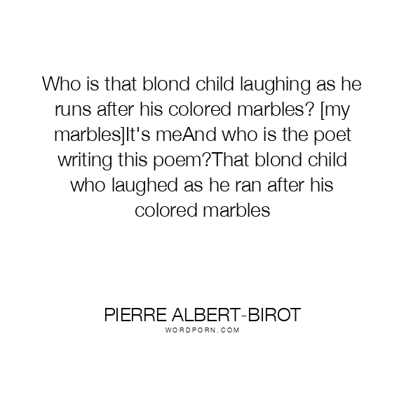 Who is that blond child laughing as he runs after his colored marbles? [my marbles]It's meAnd who is the poet writing this poem?That blond child who laughed as he ran after his colored marbles