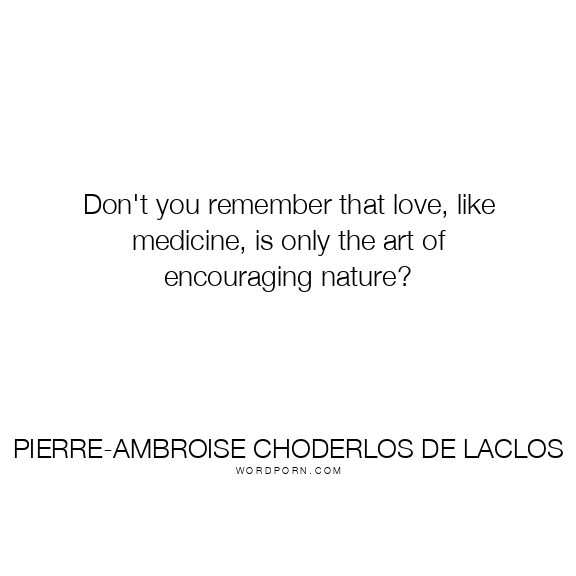 Don't you remember that love, like medicine, is only the art of encouraging nature?
