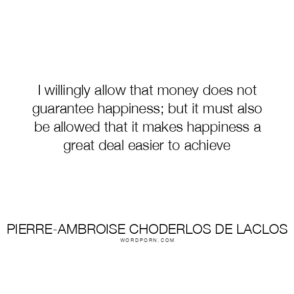 I willingly allow that money does not guarantee happiness; but it must also be allowed that it makes happiness a great deal easier to achieve