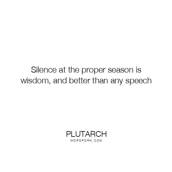 Silence at the proper season is wisdom, and better than any speech
