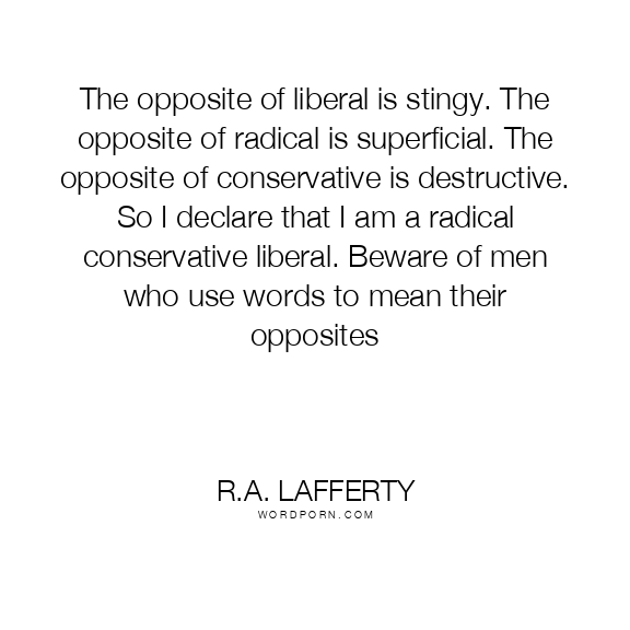 The opposite of liberal is stingy. The opposite of radical is superficial. The opposite of conservative is destructive. So I declare that I am a radical conservative liberal. Beware of men who use words to mean their opposites