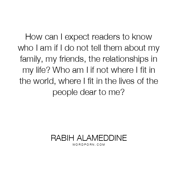 How can I expect readers to know who I am if I do not tell them about my family, my friends, the relationships in my life? Who am I if not where I fit in the world, where I fit in the lives of the people dear to me?