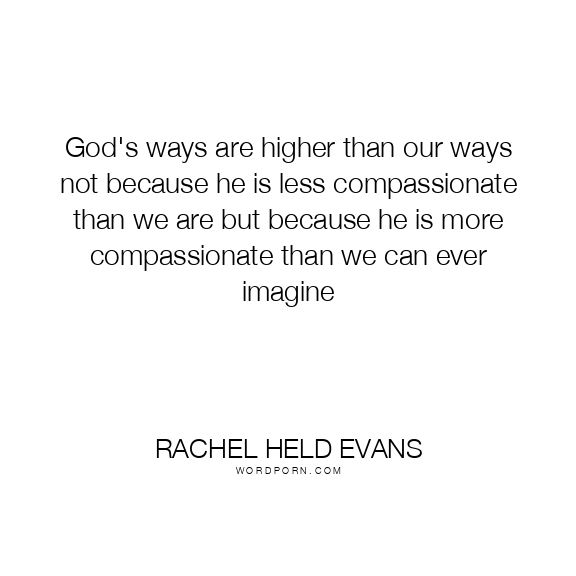 God's ways are higher than our ways not because he is less compassionate than we are but because he is more compassionate than we can ever imagine