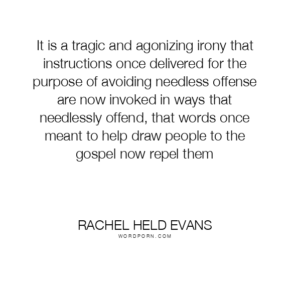 It is a tragic and agonizing irony that instructions once delivered for the purpose of avoiding needless offense are now invoked in ways that needlessly offend, that words once meant to help draw people to the gospel now repel them