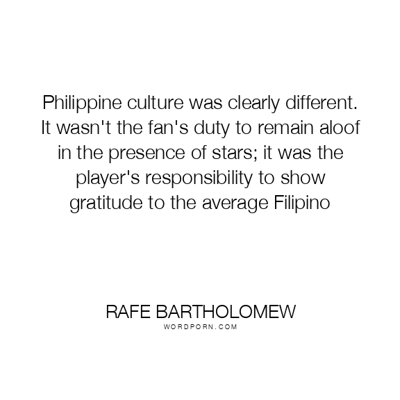 Philippine culture was clearly different. It wasn't the fan's duty to remain aloof in the presence of stars; it was the player's responsibility to show gratitude to the average Filipino