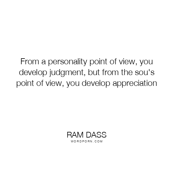 From a personality point of view, you develop judgment, but from the sou's point of view, you develop appreciation