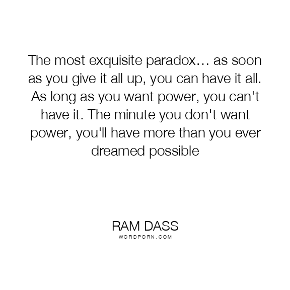 The most exquisite paradox… as soon as you give it all up, you can have it all. As long as you want power, you can't have it. The minute you don't want power, you'll have more than you ever dreamed possible