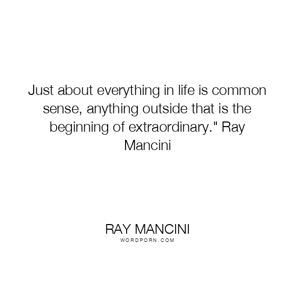 Just about everything in life is common sense, anything outside that is the beginning of extraordinary." Ray Mancini