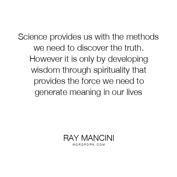 Science provides us with the methods we need to discover the truth. However it is only by developing wisdom through spirituality that provides the force we need to generate meaning in our lives