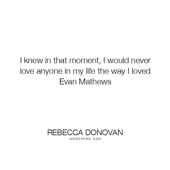 I knew in that moment, I would never love anyone in my life the way I loved Evan Mathews