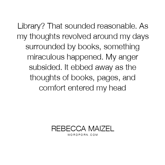 Library? That sounded reasonable. As my thoughts revolved around my days surrounded by books, something miraculous happened. My anger subsided. It ebbed away as the thoughts of books, pages, and comfort entered my head