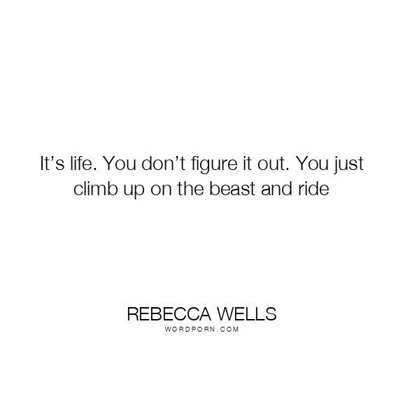 It’s life. You don’t figure it out. You just climb up on the beast and ride