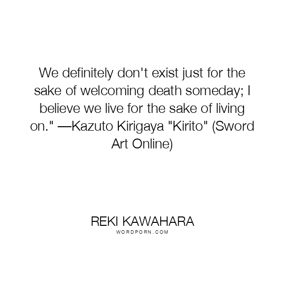 We definitely don't exist just for the sake of welcoming death someday; I believe we live for the sake of living on." —Kazuto Kirigaya "Kirito" (Sword Art Online)