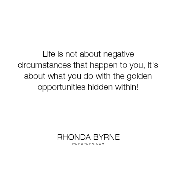 Life is not about negative circumstances that happen to you, it's about what you do with the golden opportunities hidden within!