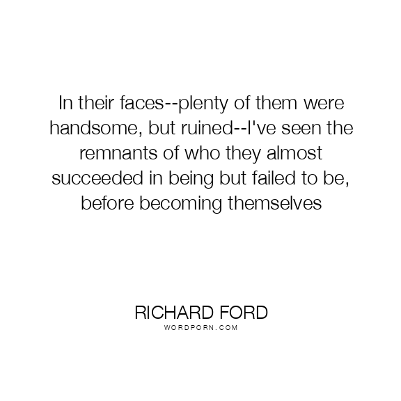 In their faces--plenty of them were handsome, but ruined--I've seen the remnants of who they almost succeeded in being but failed to be, before becoming themselves