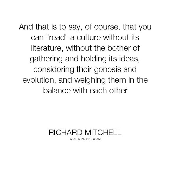 And that is to say, of course, that you can "read" a culture without its literature, without the bother of gathering and holding its ideas, considering their genesis and evolution, and weighing them in the balance with each other