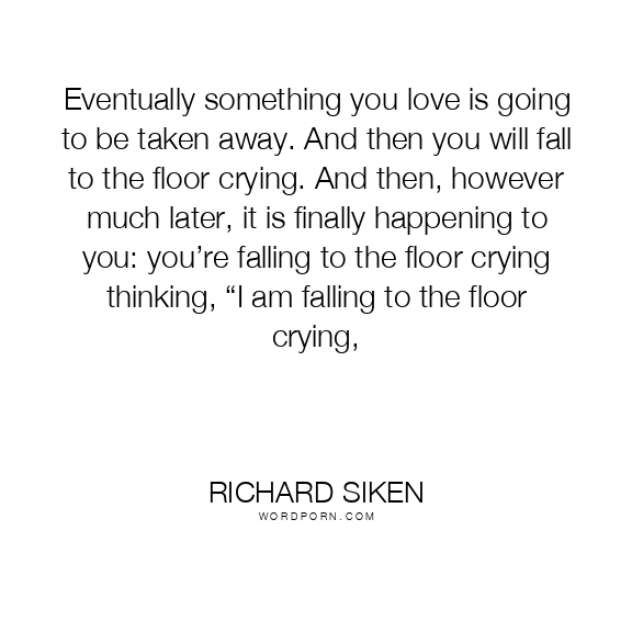 Eventually something you love is going to be taken away. And then you will fall to the floor crying. And then, however much later, it is finally happening to you: you’re falling to the floor crying thinking, “I am falling to the floor crying,