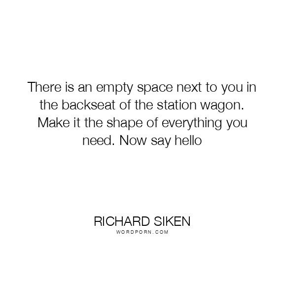 There is an empty space next to you in the backseat of the station wagon. Make it the shape of everything you need. Now say hello