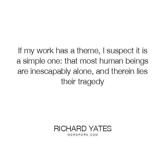 If my work has a theme, I suspect it is a simple one: that most human beings are inescapably alone, and therein lies their tragedy