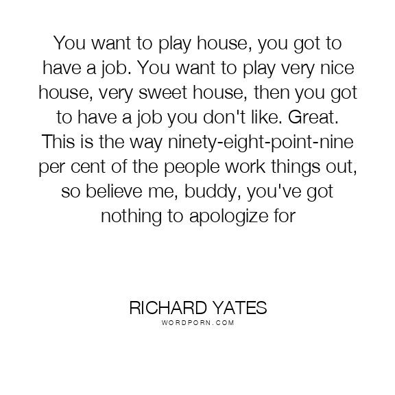 You want to play house, you got to have a job. You want to play very nice house, very sweet house, then you got to have a job you don't like. Great. This is the way ninety-eight-point-nine per cent of the people work things out, so believe me, buddy, you've got nothing to apologize for