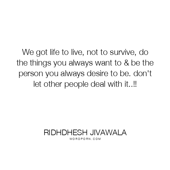 We got life to live, not to survive, do the things you always want to & be the person you always desire to be. don't let other people deal with it..!!