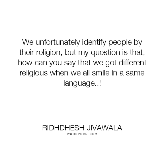 We unfortunately identify people by their religion, but my question is that, how can you say that we got different religious when we all smile in a same language..!
