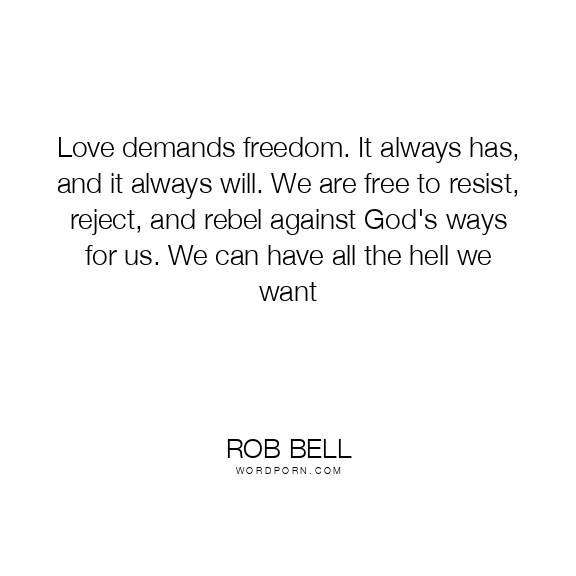 Love demands freedom. It always has, and it always will. We are free to resist, reject, and rebel against God's ways for us. We can have all the hell we want