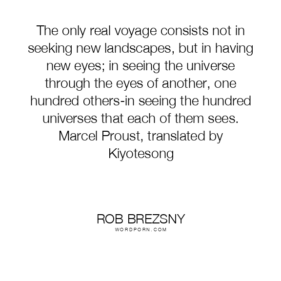 The only real voyage consists not in seeking new landscapes, but in having new eyes; in seeing the universe through the eyes of another, one hundred others-in seeing the hundred universes that each of them sees. Marcel Proust, translated by Kiyotesong