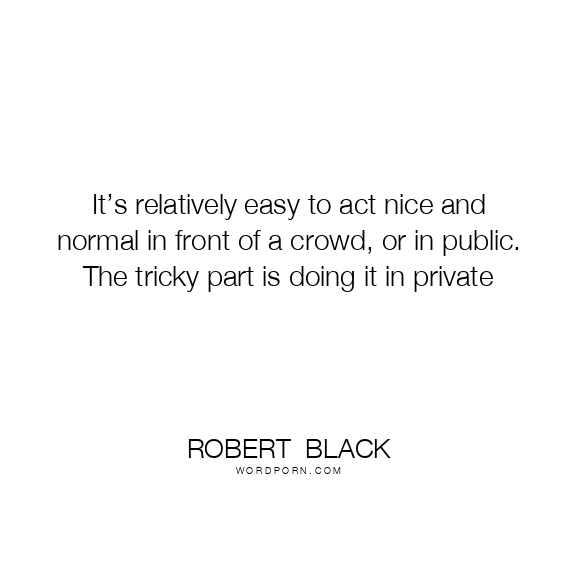 It’s relatively easy to act nice and normal in front of a crowd, or in public. The tricky part is doing it in private