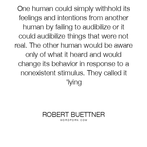 One human could simply withhold its feelings and intentions from another human by failing to audibilize or it could audibilize things that were not real. The other human would be aware only of what it heard and would change its behavior in response to a nonexistent stimulus. They called it 'lying
