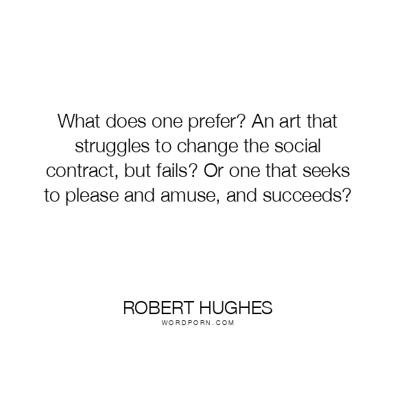 What does one prefer? An art that struggles to change the social contract, but fails? Or one that seeks to please and amuse, and succeeds?