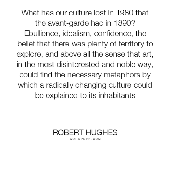 What has our culture lost in 1980 that the avant-garde had in 1890? Ebullience, idealism, confidence, the belief that there was plenty of territory to explore, and above all the sense that art, in the most disinterested and noble way, could find the necessary metaphors by which a radically changing culture could be explained to its inhabitants