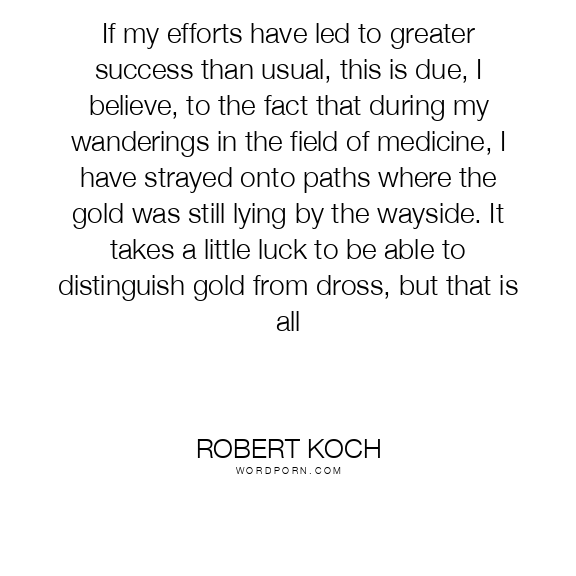 If my efforts have led to greater success than usual, this is due, I believe, to the fact that during my wanderings in the field of medicine, I have strayed onto paths where the gold was still lying by the wayside. It takes a little luck to be able to distinguish gold from dross, but that is all