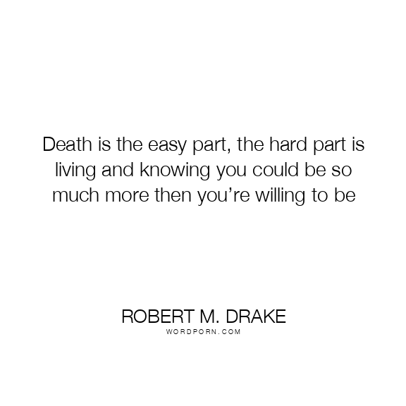 Death is the easy part, the hard part is living and knowing you could be so much more then you’re willing to be