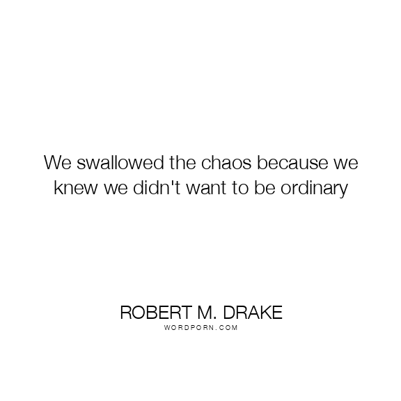 We swallowed the chaos because we knew we didn't want to be ordinary